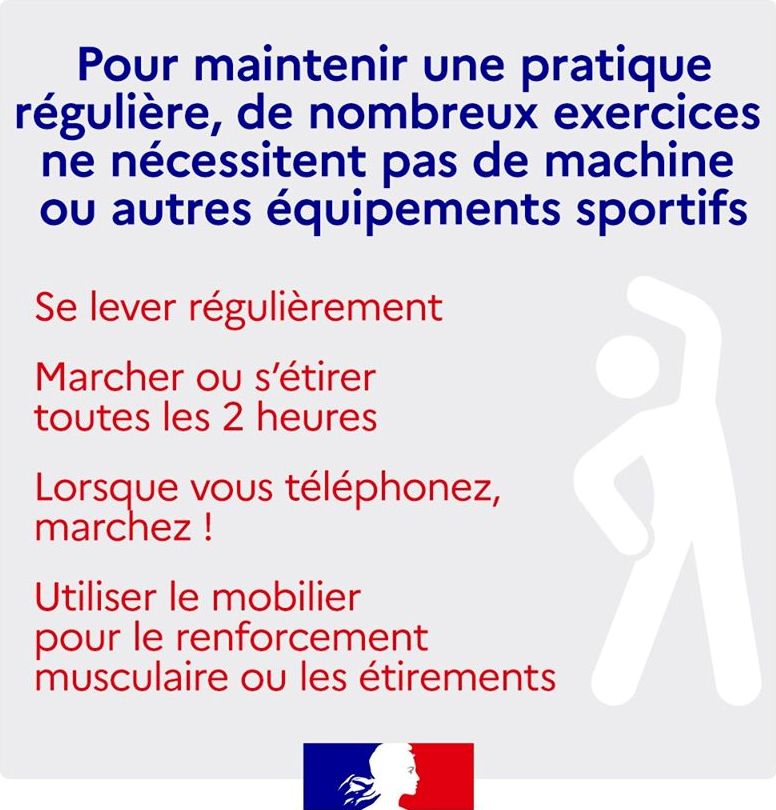 La pratique du sport est bénéfique pour la santé physique et morale, pratiquez régulièrement mais respectez les règles de confinement, de distanciation sociale et les gestes barrières.