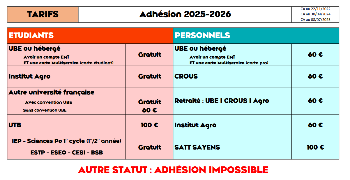 Toutes les cartes autres que celles étudiants uB doivent être munies de l’hologramme « SUAPS » validant l’adhésion au service pour l’année en cours.